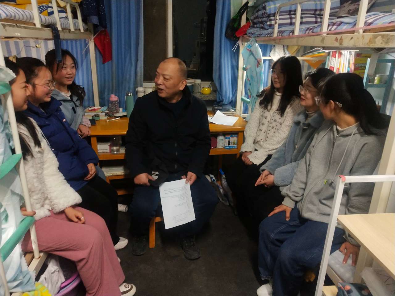 3月2日晚,williamhill中文官网教工支部组织全体教师党员深入员工宿舍,开展“教师党员进宿舍 引领学子创文明”主题党日活动。根据公司党委和教工支部前期策划安排,教师党员深入2018级毕业班员工宿舍,与员工开展面对面的交流和谈心谈话,对员工考研情况、就业动向、毕业论文进展和学业完成情况等进行摸底,开展安全教育和疫情防控宣讲,督促员工养成良好的学习生活习惯,引导员工树立正确的世界观、价值观和人生观,自觉遵守法律法规、校纪校规,珍惜校园生活,规划好人生之路,知荣辱、懂感恩,以积极乐观、健康文明的新风貌迎接新学期。同学们积极回应老师的询问、指导和关爱,谈对专业学习和校园生活的感受、谈自己的就业、人生目标和下一步努力的方向,还向老师请教了关于学习、考试、就业上的一些问题与困惑。