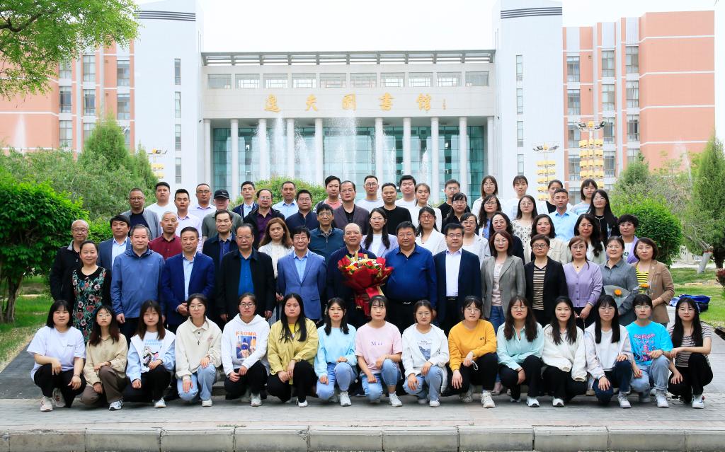 最后,教师代表和员工代表为朱福国老师送上鲜花和祝福,并在图书馆前合影留念。