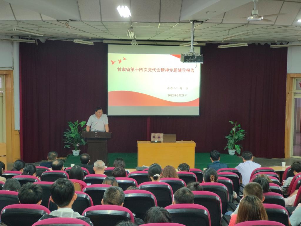 报告会上,赵柱从甘肃省第十四次党代会召开的基本情况、充分认识学习宣传贯彻省第十四次党代会的重大意义、全面准确把握省第十四次党代会的精神实质、精心组织迅速兴起学习宣传贯彻省第十四次党代会精神的热潮等四个方面对甘肃省第十四次党代会精神作了全面深入的解读,并结合国情、省情、校情和具体实例对公司面临改革、寻求突破、提升发展的关键时期,抓好用好党代会提出的新思路新部署新要求将是一次新的发展机遇进行了阐释,要求公司、师生应在幸福美好新甘肃、富民兴陇新局面的建设中找准自身定位、谋划发展、踔厉奋发、有所作为。
