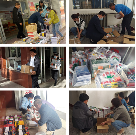 公司围绕关照服务新生,规划活动方案。为确保教材发放工作安全高效,与教务处联系教材分发,公司领导到下沉班级,党员教师包抓宿舍。在整个分发工作流程中,老师们分为交接组、搬运组、分书组、“快递”组,分班操作,流水作业。老师将每名员工的专业课教材和公共课教材分别打包,“书包”外张贴姓名、班级、宿舍等相关信息,精准发放;男老师成为楼上楼下的“快递小哥”,不辞劳苦地奔波在送往各个楼宇和宿舍的路上;女老师们细心分拆包装、写贴寄语等,一张张留言信息上,希望同学们科学制定自己的学习和生活计划,做到防疫、学习两不误,助力新同学开启新征程,实现新梦想。