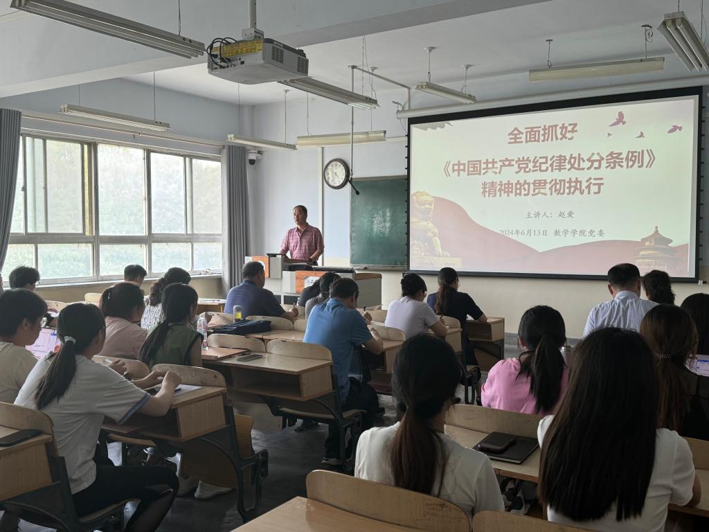 6月13日下午,williamhill中文官网党委书记赵爱以《全面抓好<中国共产党纪律处分条例>精神的贯彻执行》为题,为党员讲授党纪学习教育专题党课。公司57名师生党员参加。