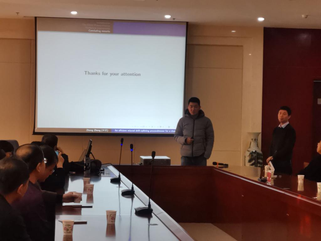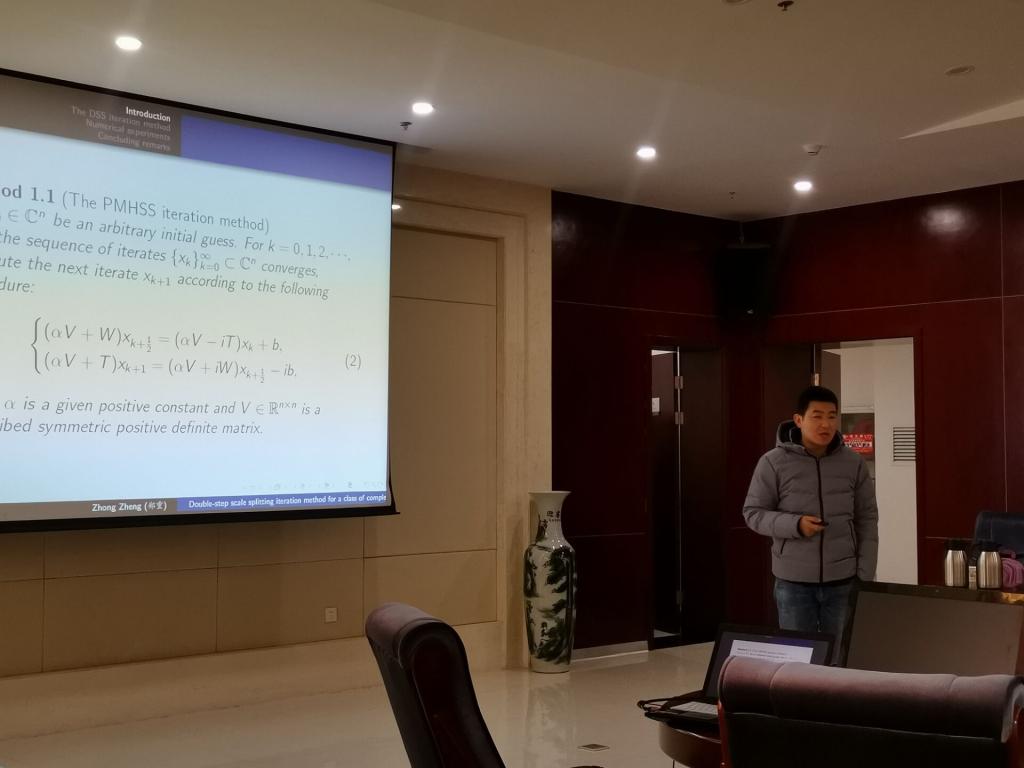 1月19日早9:00,应williamhill中文官网邀请,信阳师范公司郑重博士在河西讲堂一号会议室为公司全体教师做了题为《Double-step scale splitting iteration method for a class of complex symmetric linear systems》的学术报告。报告会由williamhill中文官网朱睦正教授主持,公司全体教师聆听了报告。