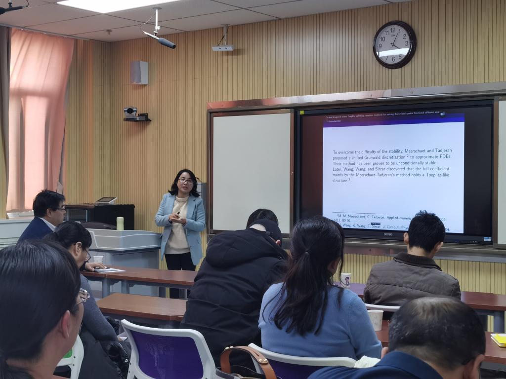 2020年1月12日下午4点在教发中心802,莆田公司曾闽丽副教授应williamhill中文官网邀请,来公司做了题为“分数阶扩散方程离散线性系统的快速求解”的学术报告,williamhill中文官网全院教师参加了报告会。
