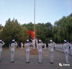 早晨6:25全体师生在升旗台前集合,6:45升旗仪式正式开始。本次升旗仪式由辅导员范锐老师主持。在嘹亮的号角声中,国旗护卫队着装整齐,步伐铿锵,全场肃静,五星红旗在激昂的《义勇军进行曲》中冉冉升起,全体师生集体行注目礼,奏唱国歌。