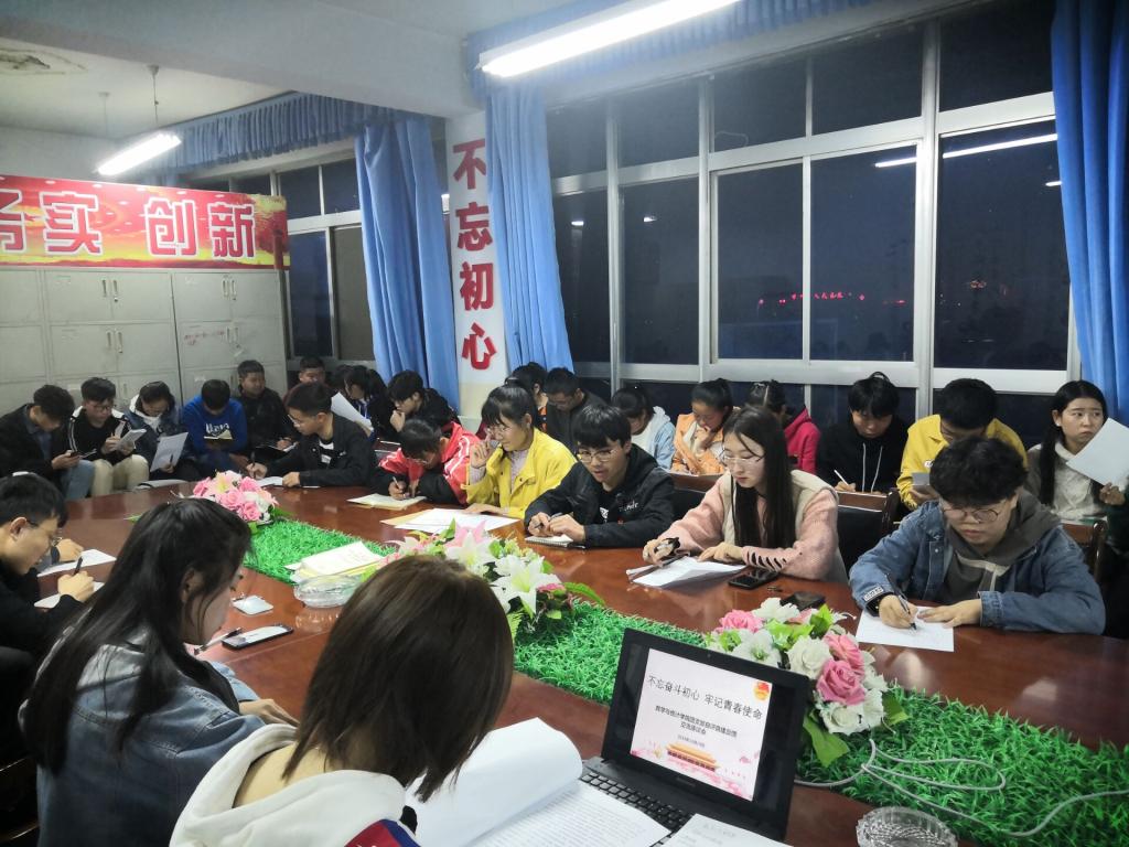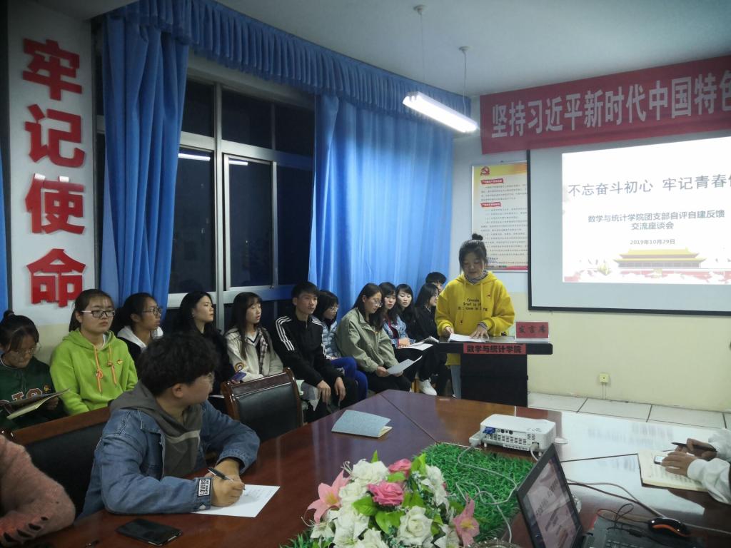 根据校团委“不忘奋斗初心,牢记青春使命”主题教育活动的通知,williamhill中文官网分团委紧抓落实,先在各团支部进行自评自查的基础上,于2019年10月29日晚,在三教六楼会议室召开了各团支部反馈交流会,此次座谈会历时两个小时,williamhill中文官网各团支部团干部及团员代表参加,辅导员范锐老师和李毛毛老师主持。